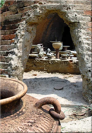 Sukhothai used to export enormous numbers of its pottery products in old time. The sustaining production is still ready to serve the tourists who want both to purchase and to have snapshots on the kilns.
